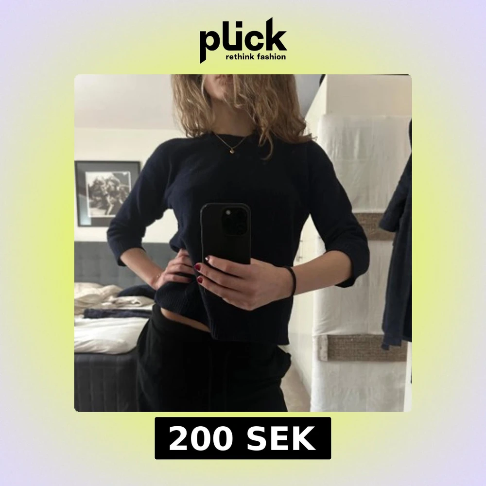 Säljer denna mörkblå trekvarts ärmade tröjan som inte kommer till användning längre. Storlek L men passar bra på mig som vanligtvis har S💛