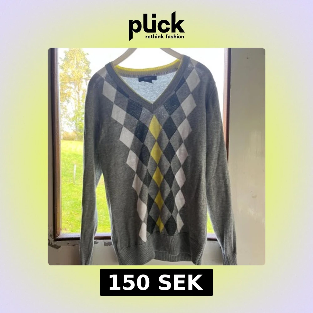 Snygg grå tröja från Abacus med klassiskt rutig mönster i vitt, mörkgrått och gult framtill. V-ringad hals med gul kant och långa ärmar. Perfekt för dig som gillar preppy stil och vill sticka ut lite extra.