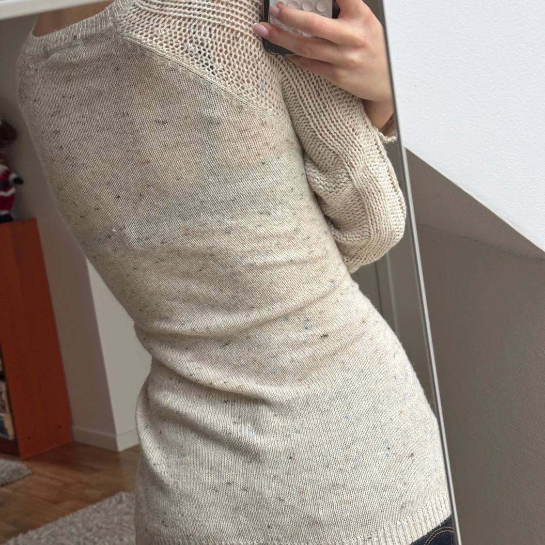 Beige stickad tröja med fickor