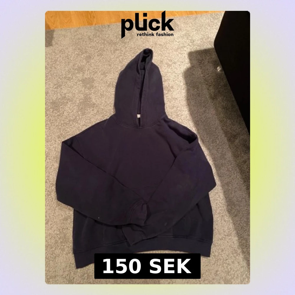 Snygg mörkblå hoodie från Gina i storlek S. Klassisk modell med huva och långärmad design, perfekt för chill dagar. Tillverkad i mjuk bomull som känns skön mot huden. Enkel och stilren utan tryck eller mönster.