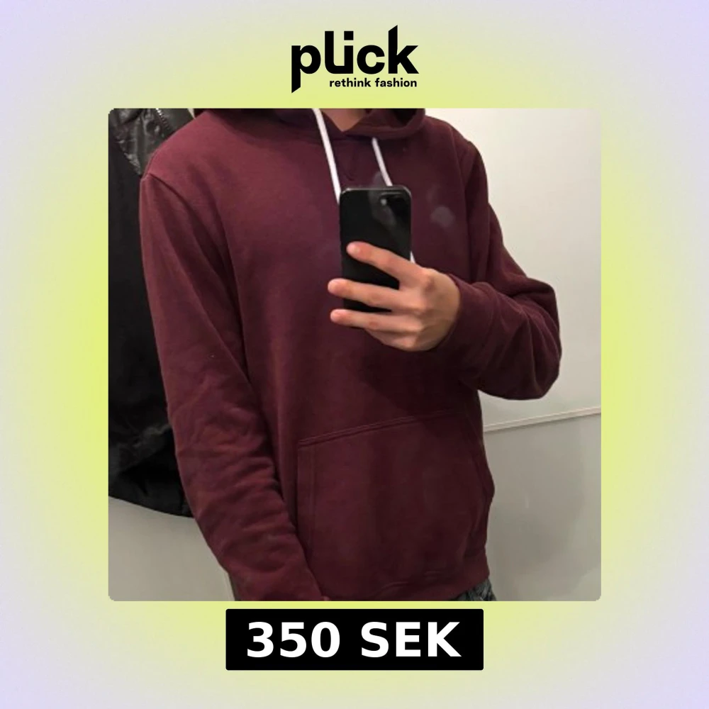 Säljer en vinröd hoodie med huva och vita snören. Tröjan har en stor magficka framtill och är långärmad med ribbade muddar. Perfekt för dig som gillar en enkel och stilren look. Storlek S.