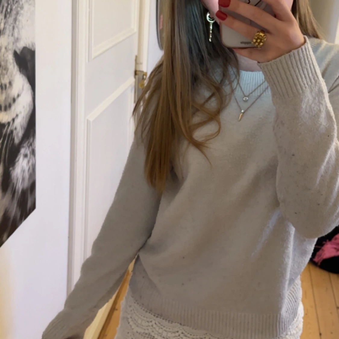 En enkel och stilren ljusgrå stickad tröja med rund halsringning och ribbade muddar. Tröjan har en normal passform och långa ärmar, perfekt för lager-på-lager under kyligare dagar. Rätt så nopprig