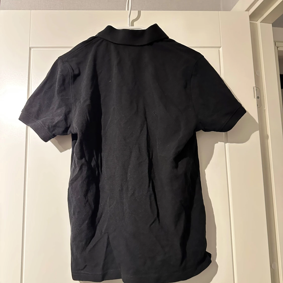 Säljer en klassisk svart pikétröja från East West i storlek S. Tröjan har korta ärmar och en traditionell krage med knappar. Perfekt för en stilren och avslappnad look.