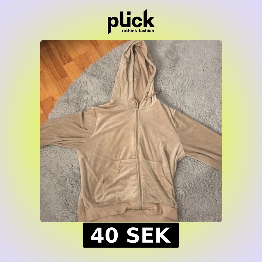 Mjuk och skön beige hoodie i velour med dragkedja framtill och huva med snörning. Tröjan har två stora fickor framtill och ribbade muddar vid ärmslut och nederkant. Perfekt för en chill och avslappnad stil.
