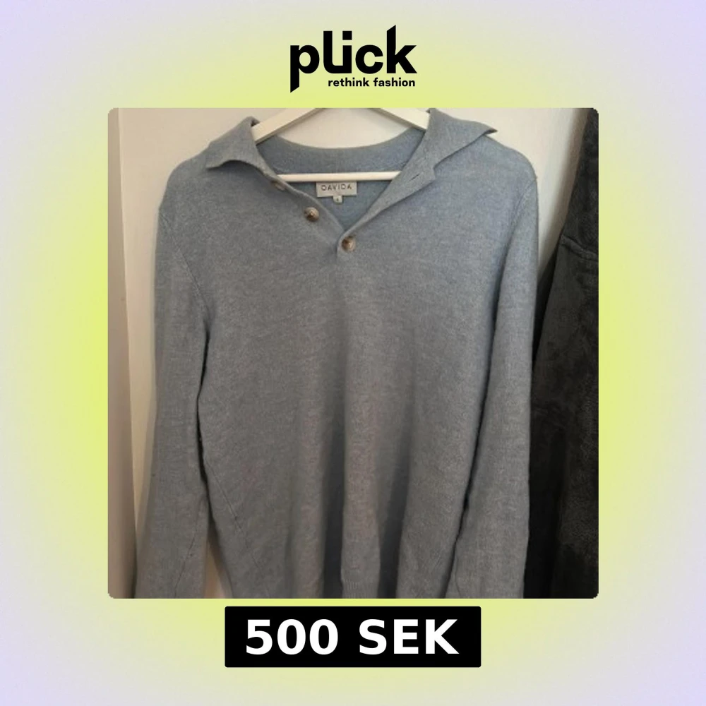 Säljer en ljusblå stickad kofta från Davida i storlek S. Tröjan har en klassisk krage med två knappar framtill och är långärmad. Mjuk och skön kvalitet, perfekt för kyliga dagar. Enkel och stilren design som funkar till många olika looks.