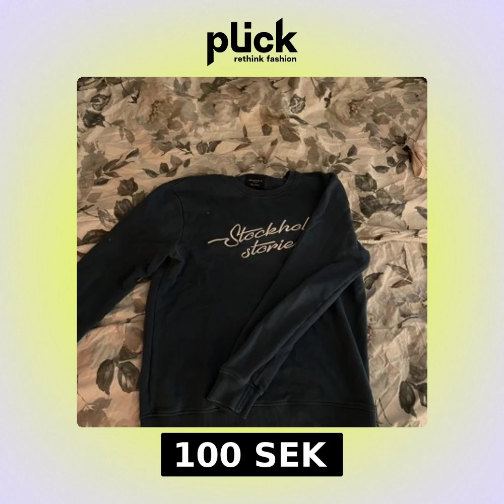 Säljer en stilren mörkblå tröja från Stockholm Stories med text på bröstet. Tröjan har långa ärmar och en rund halsringning. Perfekt för en avslappnad stil.