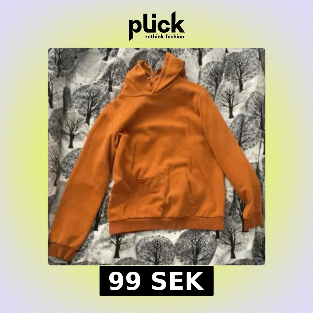 Säljer en snygg orange hoodie med en stor ficka framtill. Perfekt för kyliga dagar med sin mjuka och bekväma passform. Huvan ger extra värme och stil.