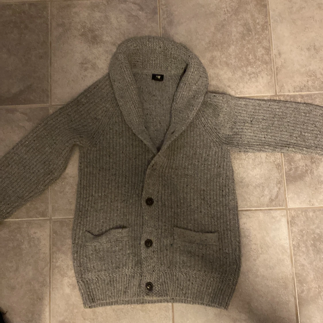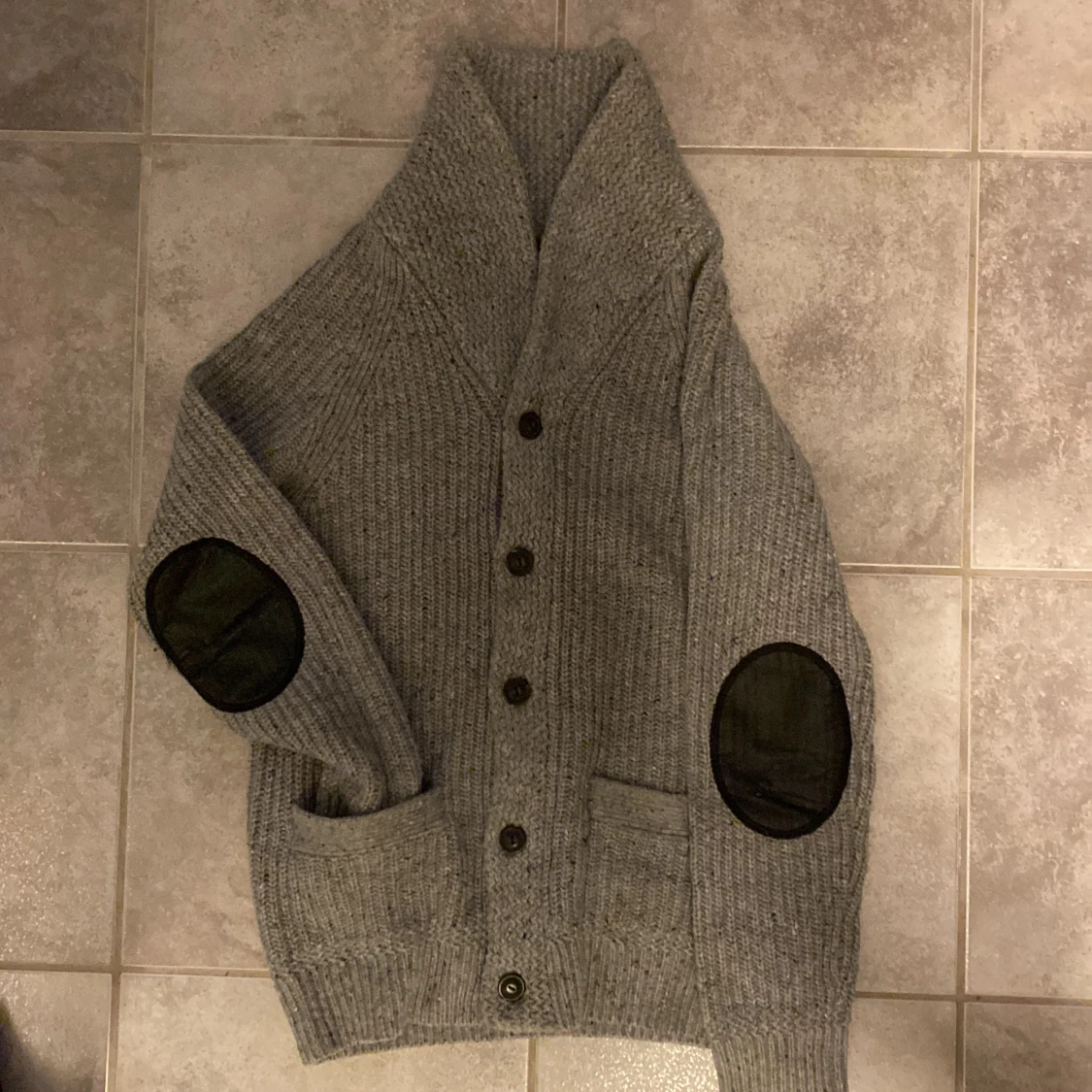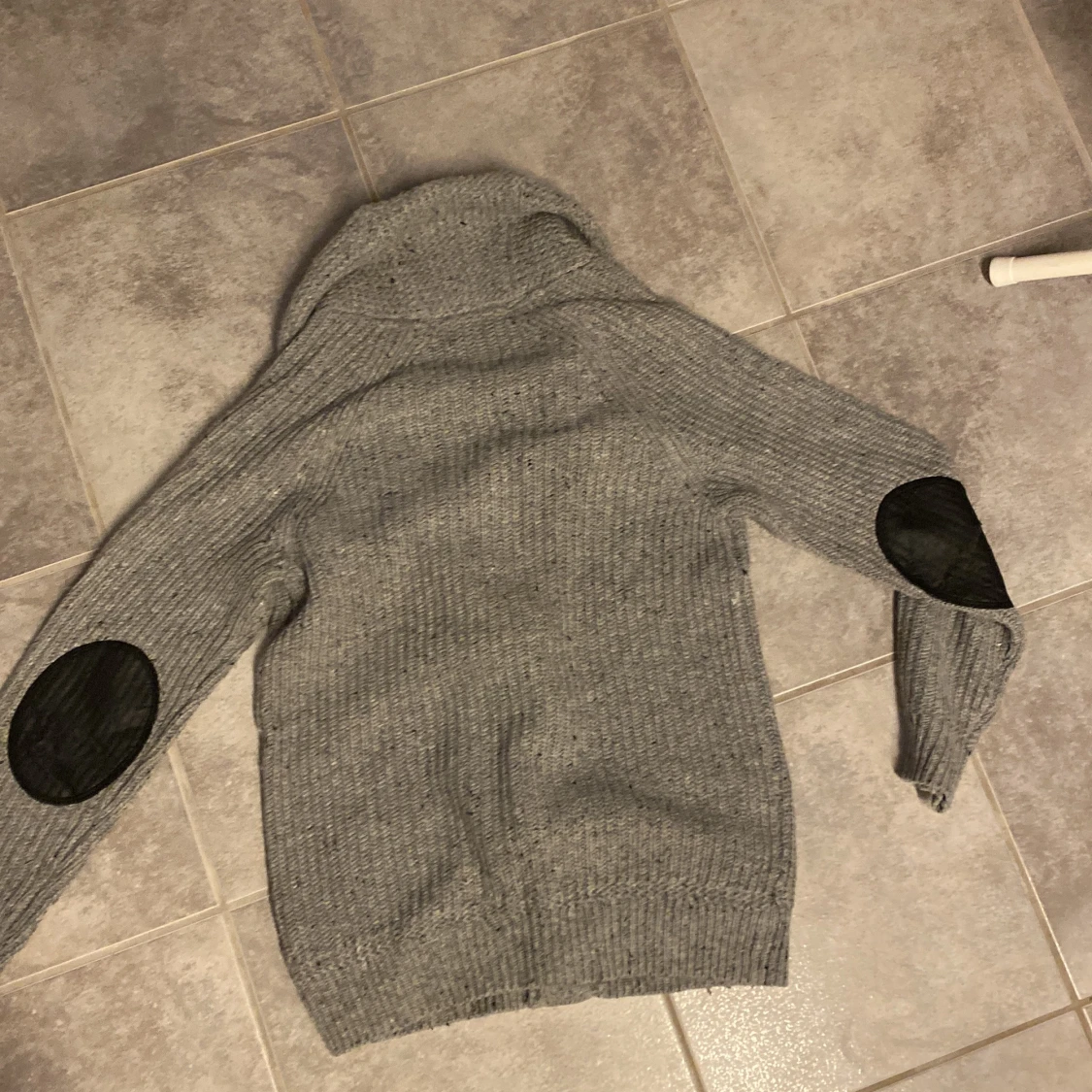 Säljer en stilren grå stickad kofta. Koftan har en mysig sjalkrage och knappar framtill. Den är utrustad med praktiska fickor och har svarta armbågslappar som en snygg detalj. Perfekt för kyliga dagar! För mer frågor eller funderingar hör gärna av dig! MVH Viktor🍀