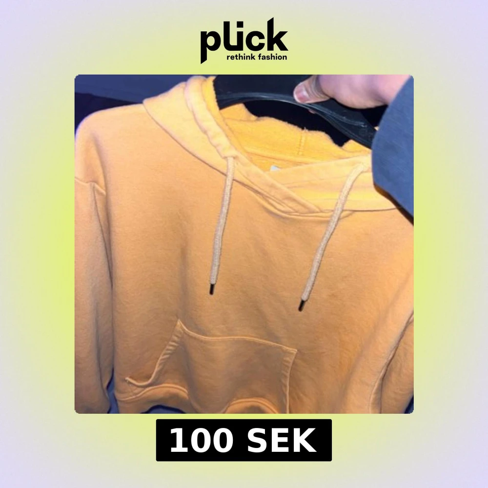 Säljer en gul hoodie med klassisk magficka och snörning i huvan. Tröjan har lång ärm och är tillverkad i mjukt bomullsmaterial, perfekt för chill dagar. Huvan är fodrad och ger extra mysfaktor. Passar dig som gillar enkel och stilren streetwear.