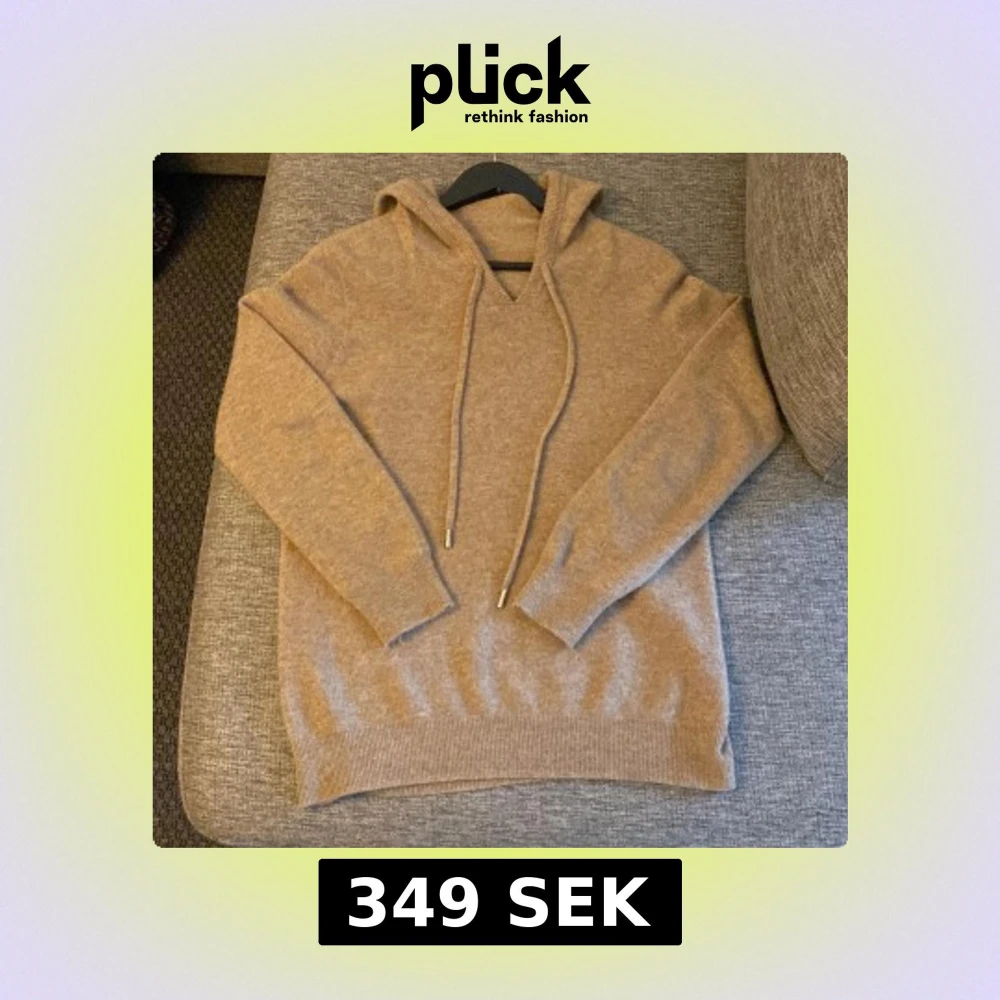 Mjuk beige hoodie i kashmir med långa ärmar och huva. Tröjan har snörning med metalländar och ribbade muddar vid ärmslut och nederkant. Perfekt för dig som gillar chill och stilren look.