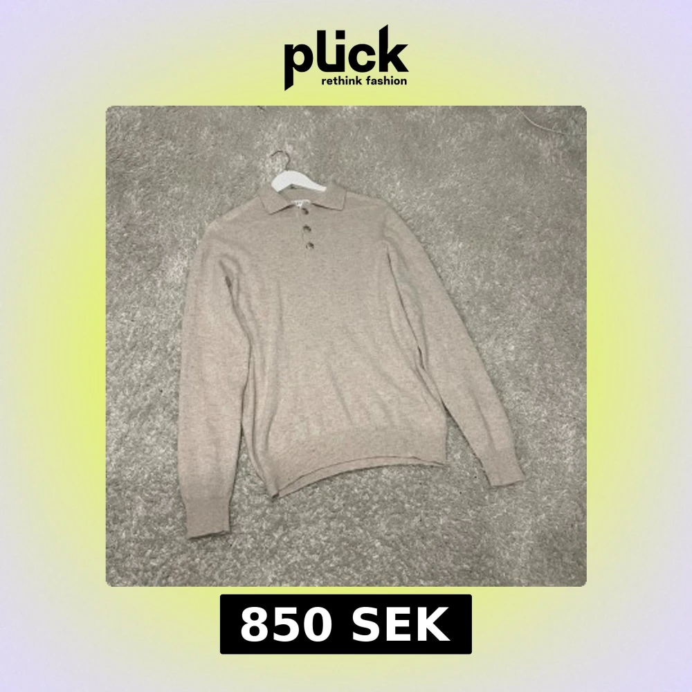 Davida 100 % cashmere-tröja Beige kashmirtröja med krage och tre knappar – mjuk, tidlös och lyxig. Storlek S, normal passform. Använd 1 gång, i nyskick utan fläckar eller skador. Nypris ca 2 500–3 000 kr