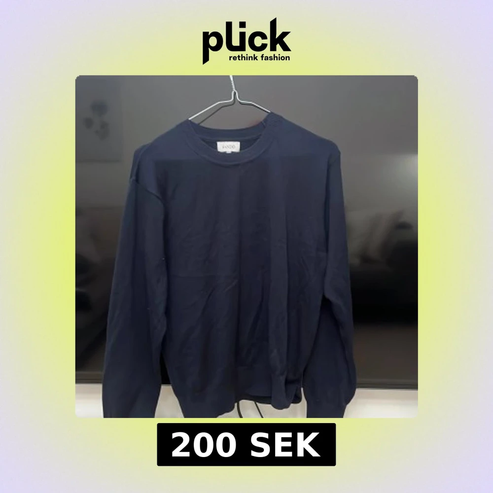 En stilren mörkblå tröja från Sandö i storlek S. Tröjan har rund halsringning, långa ärmar och är tillverkad i ett mjukt bomullstyg. Perfekt för lager-på-lager och enkel att matcha med jeans eller chinos.