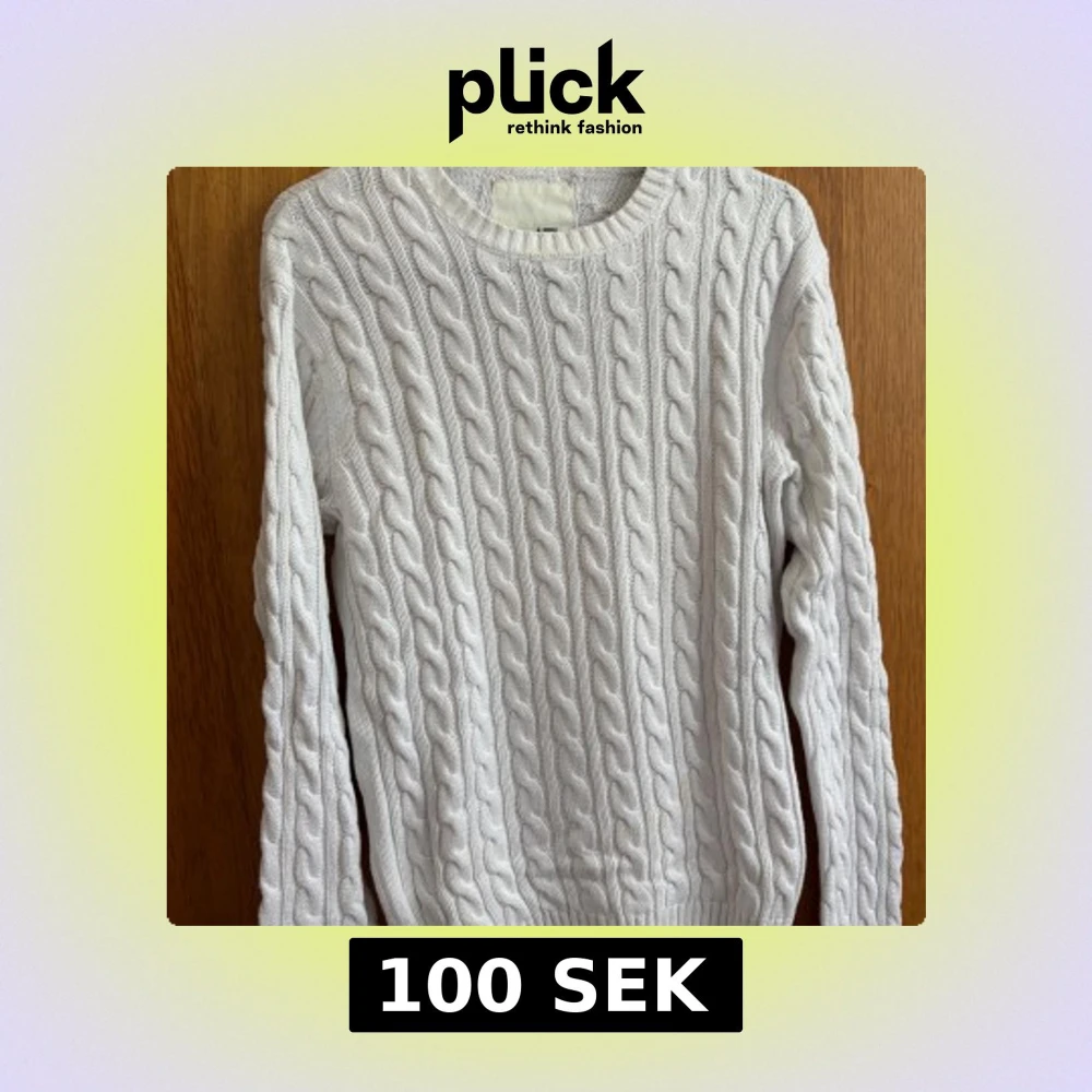 Kabelstickad vit tröja med rund hals och långa ärmar. Tröjan har klassiskt flätmönster och är gjord i mjuk bomull, perfekt för lager-på-lager under kyliga dagar. Snygg och enkel att matcha med jeans eller kjol.
