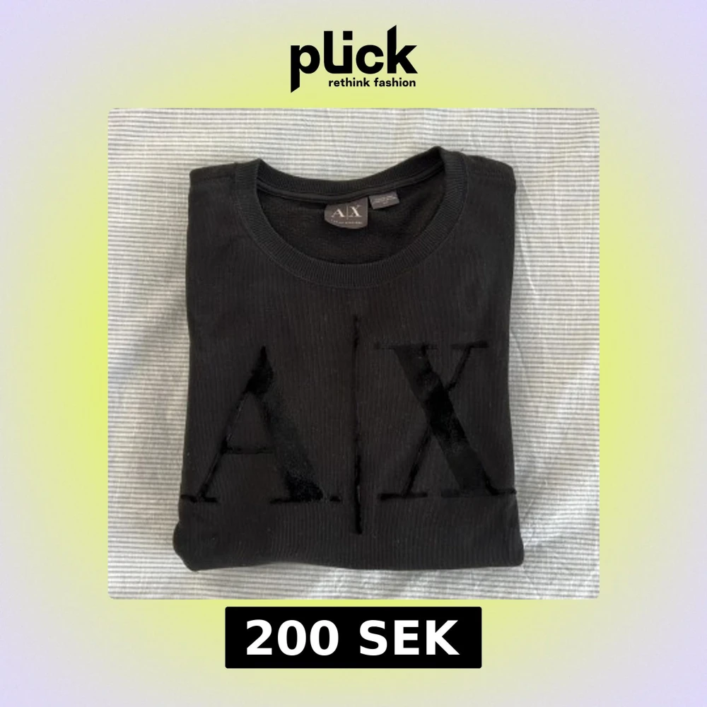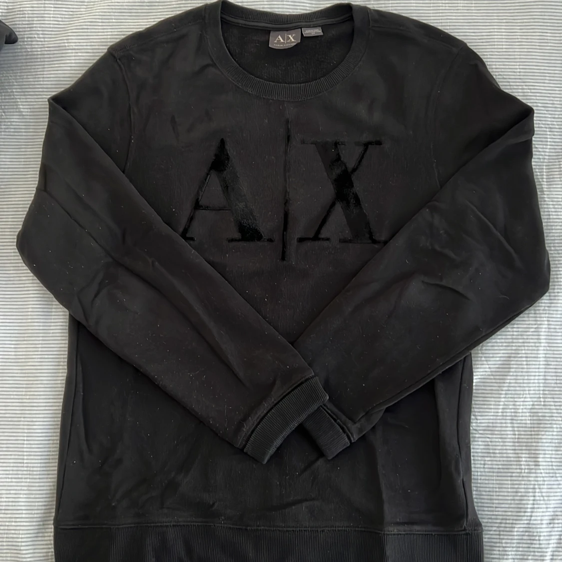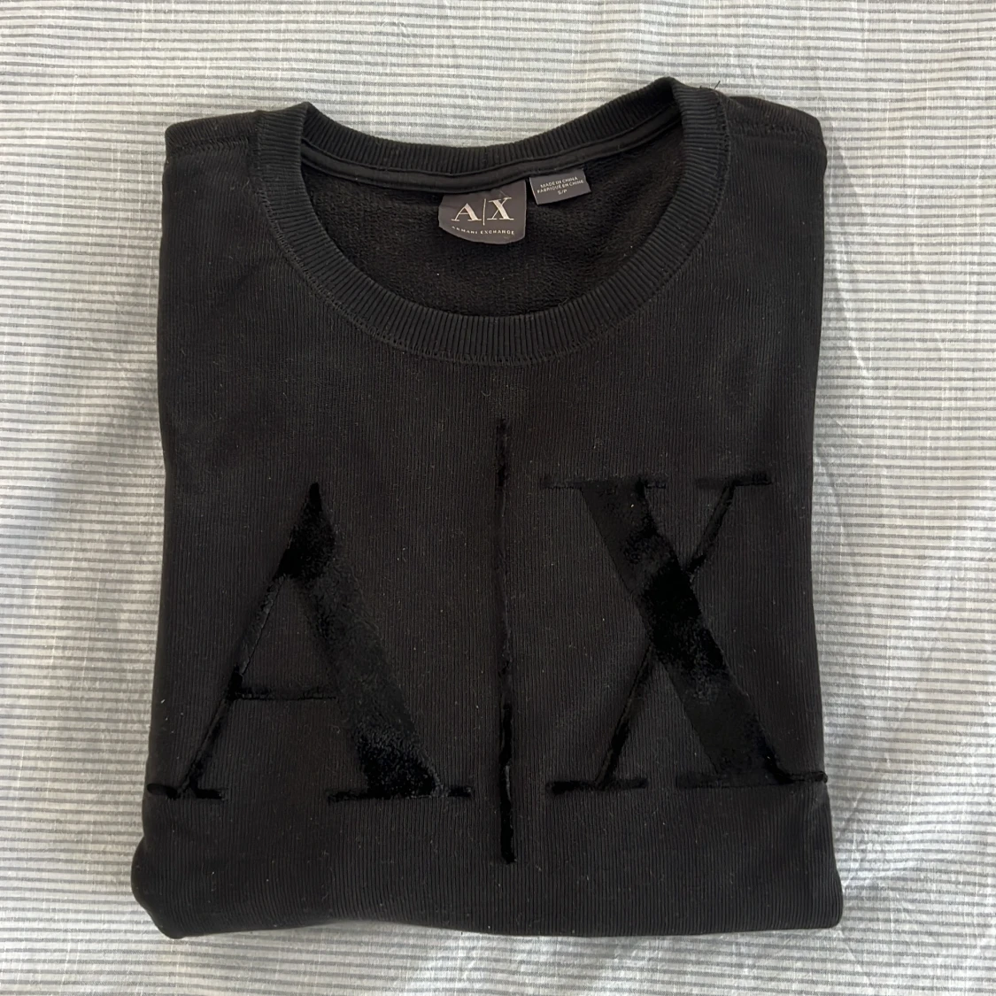 Snygg svart tröja från Armani Exchange med stort A|X tryck på framsidan. Tröjan har långa ärmar och rund halsringning. Perfekt för en stilren look.