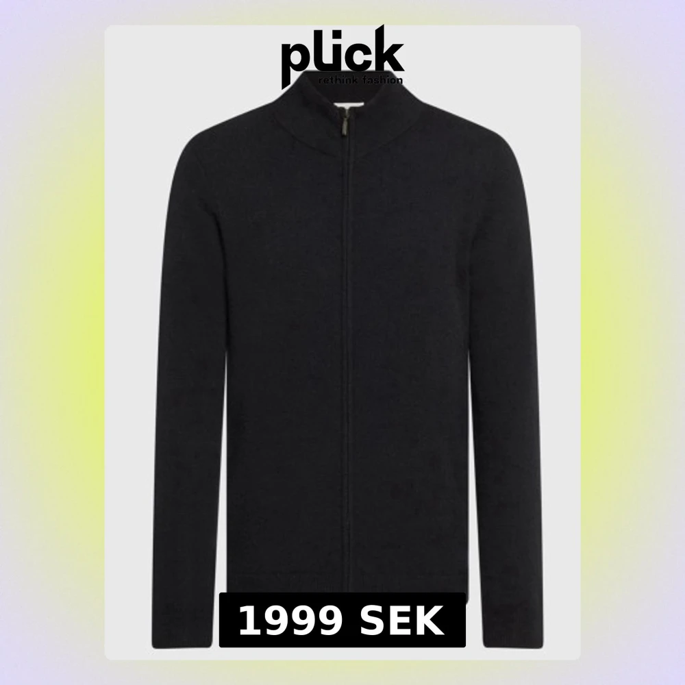 Stilren svart kofta med hel dragkedja och ståkrage, tillverkad i mjuk kashmir. Långärmad och med ribbade muddar vid ärmslut och nederkant. Perfekt för dig som gillar klassisk och enkel design med lyxig känsla. Nypris 3300kr