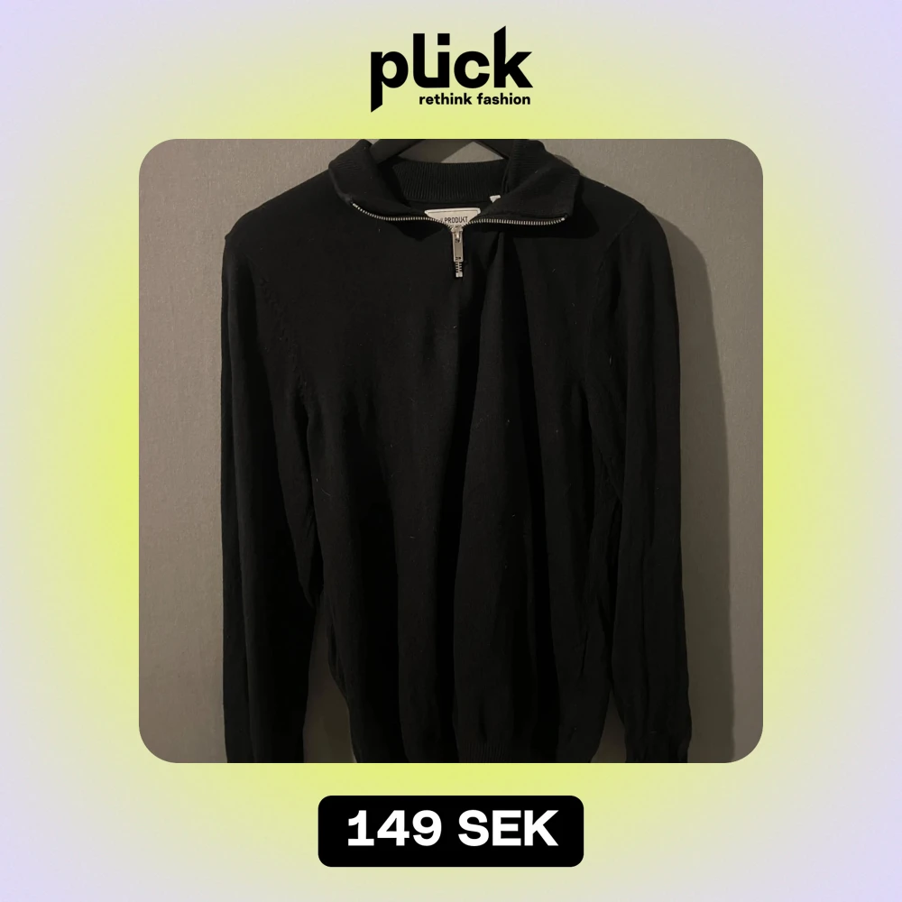 Säljer en stilren svart tröja med dragkedja vid halsen. Perfekt för både vardag och lite kyligare dagar. Tröjan har långa ärmar och en ribbad krage som ger en snygg look. Passar bra till jeans eller chinos!