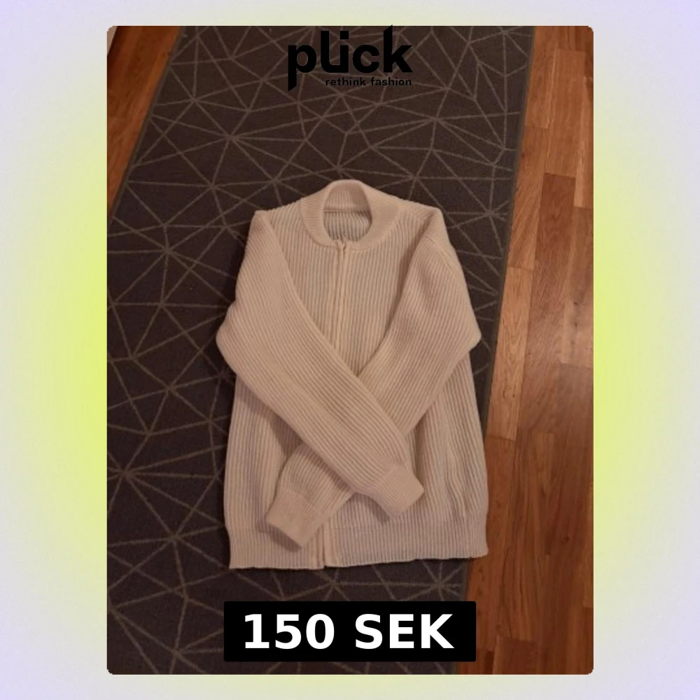 Säljer en beige ribbstickad kofta med dragkedja framtill. Koftan har långärmad design, rundad hals och är gjord i ett mjukt stickat material. Perfekt för lager-på-lager och chill dagar.