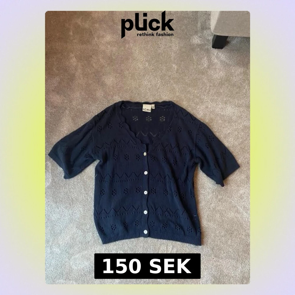Säljer en mörkblå kofta från ICHI med korta ärmar och v-ringad hals💕