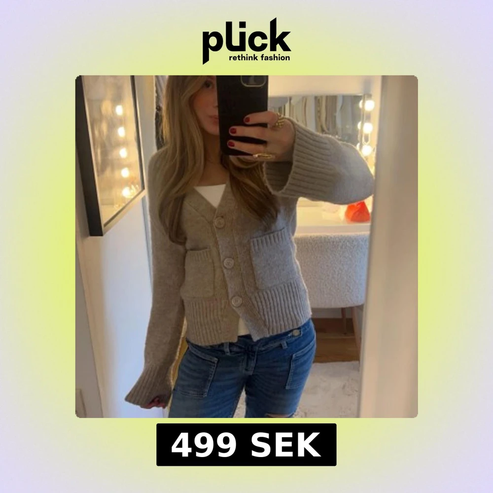 Säljer en mysig beige stickad kofta med stora knappar och två fickor framtill. Perfekt för kyliga dagar och ger en avslappnad look. Koftan har långa ärmar och en ribbad design vid ärmslut och nederkant. Är en Xs men passar en S/M då storlek är lite stor!🌸Säljer för ett lite dyrare pris då de är en stor favorit