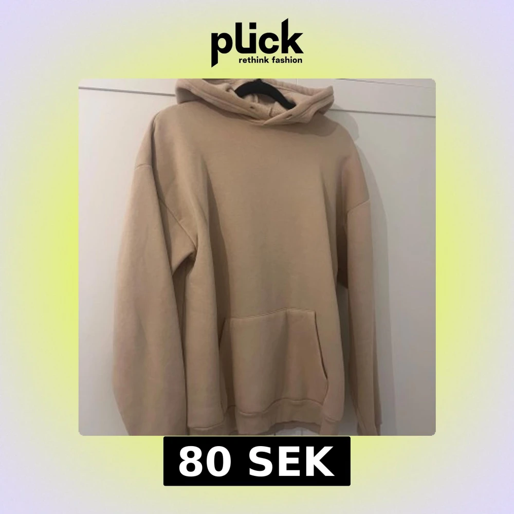 Säljer en enkel och stilren beige hoodie med huva och stor magficka.