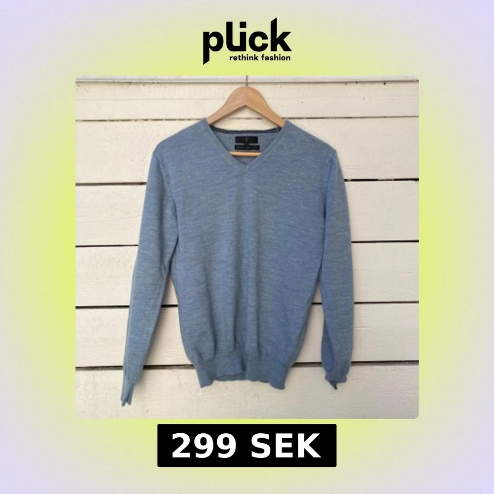 Säljer en tunn och mjuk ljusblå tröja från Jasper Conran i exklusiv italiensk merinoull. Tröjan har v-ringning, långa ärmar och ribbade muddar. Perfekt för lager-på-lager och stilrena outfits.