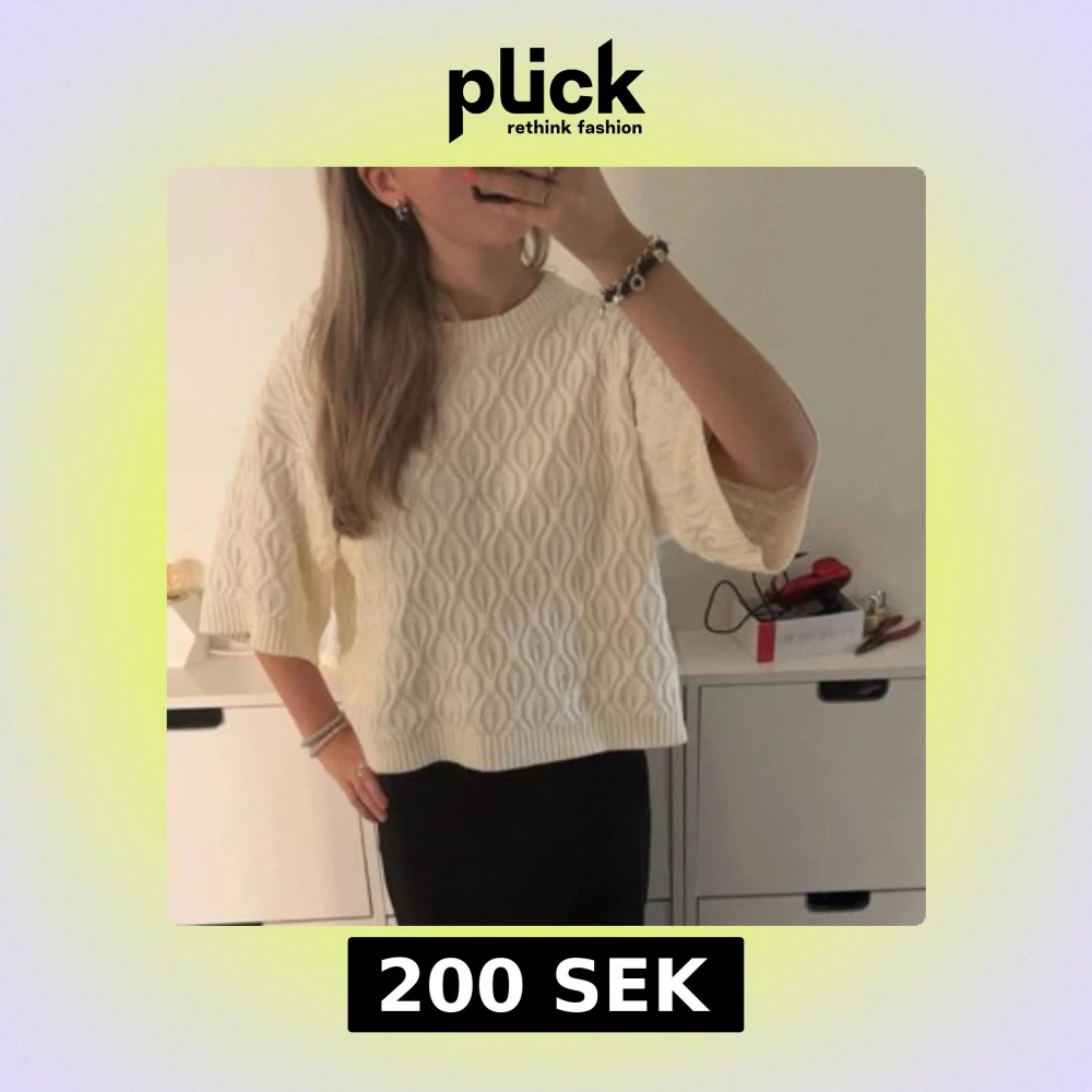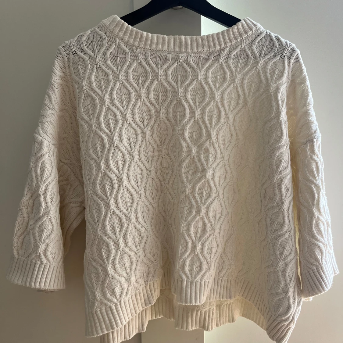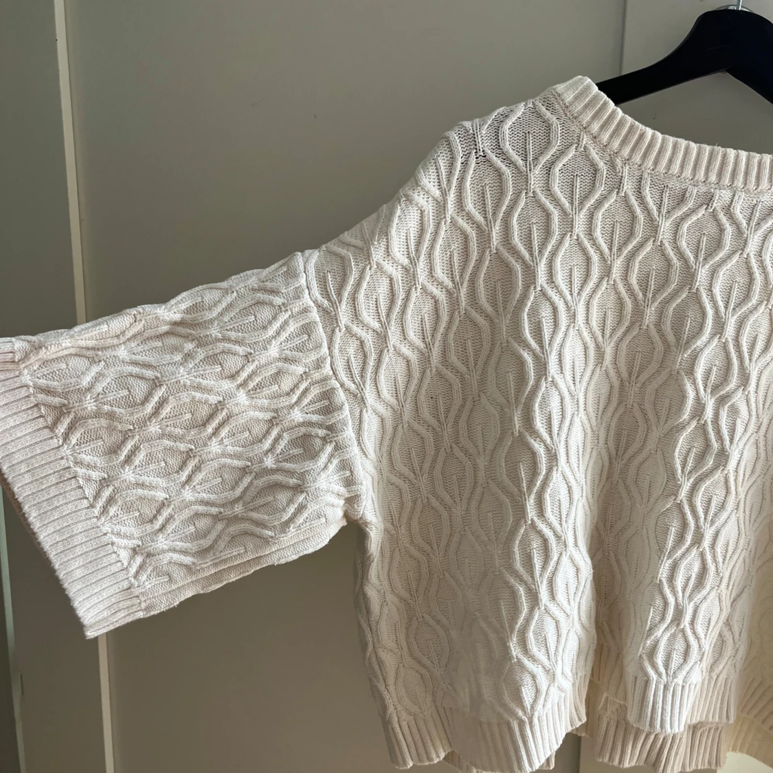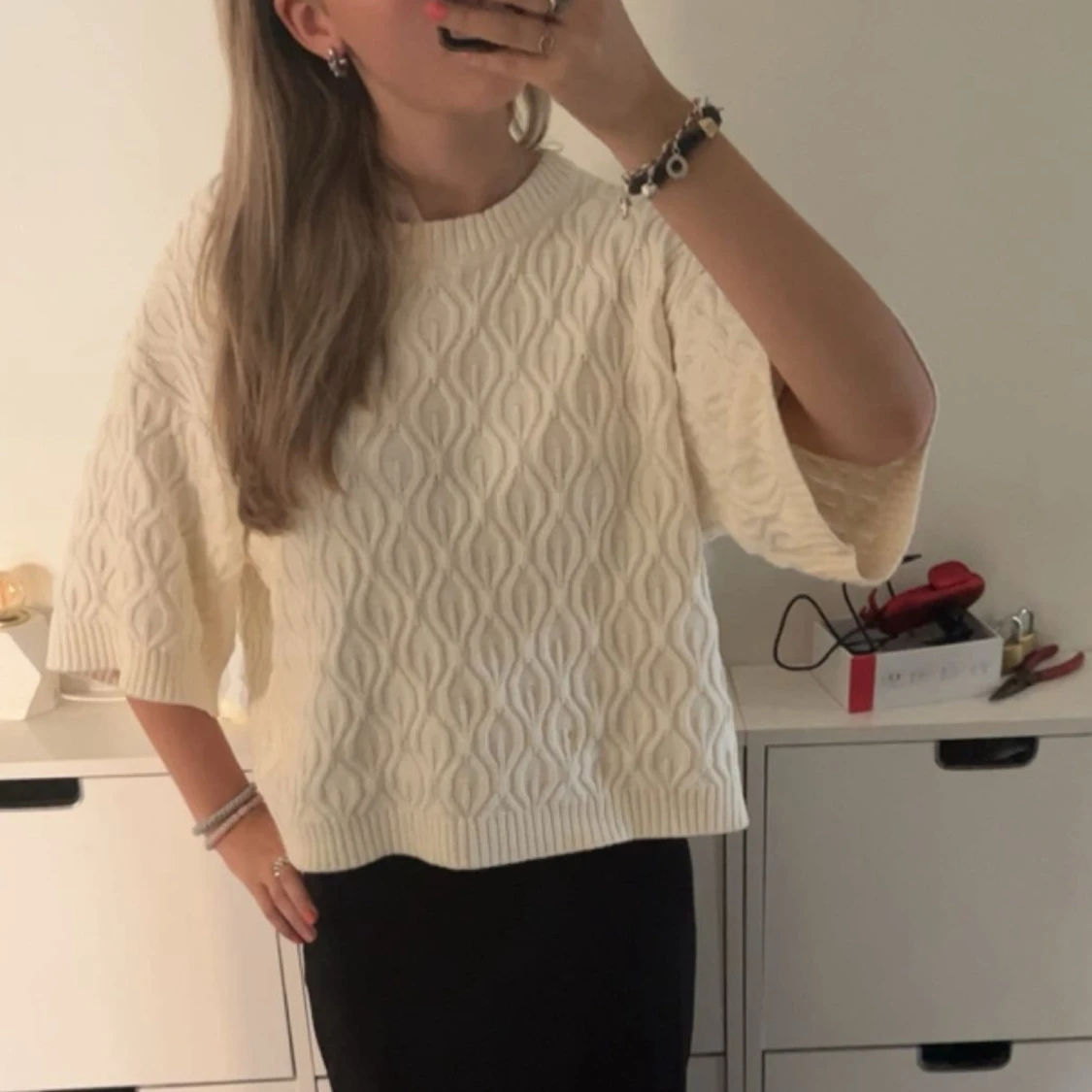 Benvit stickad tröja med snyggt strukturmönster och breda korta armar