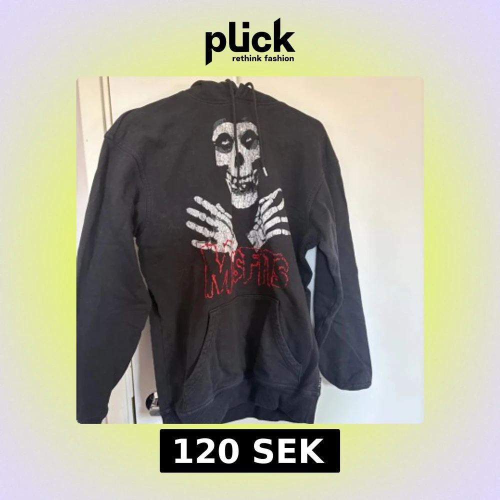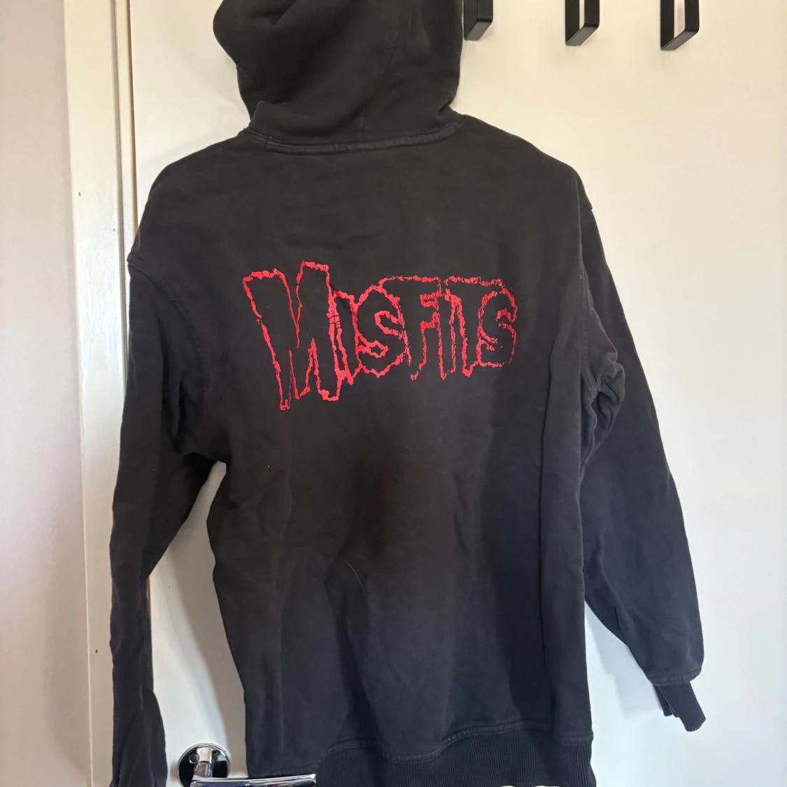 Svart hoodie med stort Misfits-tryck i rött på både fram- och baksidan. Skriv för fler bilder 🫶🏼