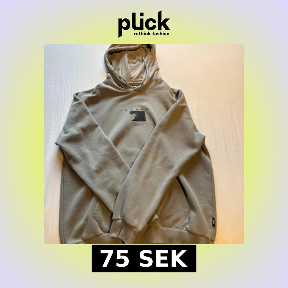 Snygg beige hoodie från Zigh med svart grafiskt print på både bröstet och ryggen. Tröjan har huva, känguruficka och ribbade muddar. Perfekt för dig som gillar streetwear och vill ha en stilren look med coola detaljer.