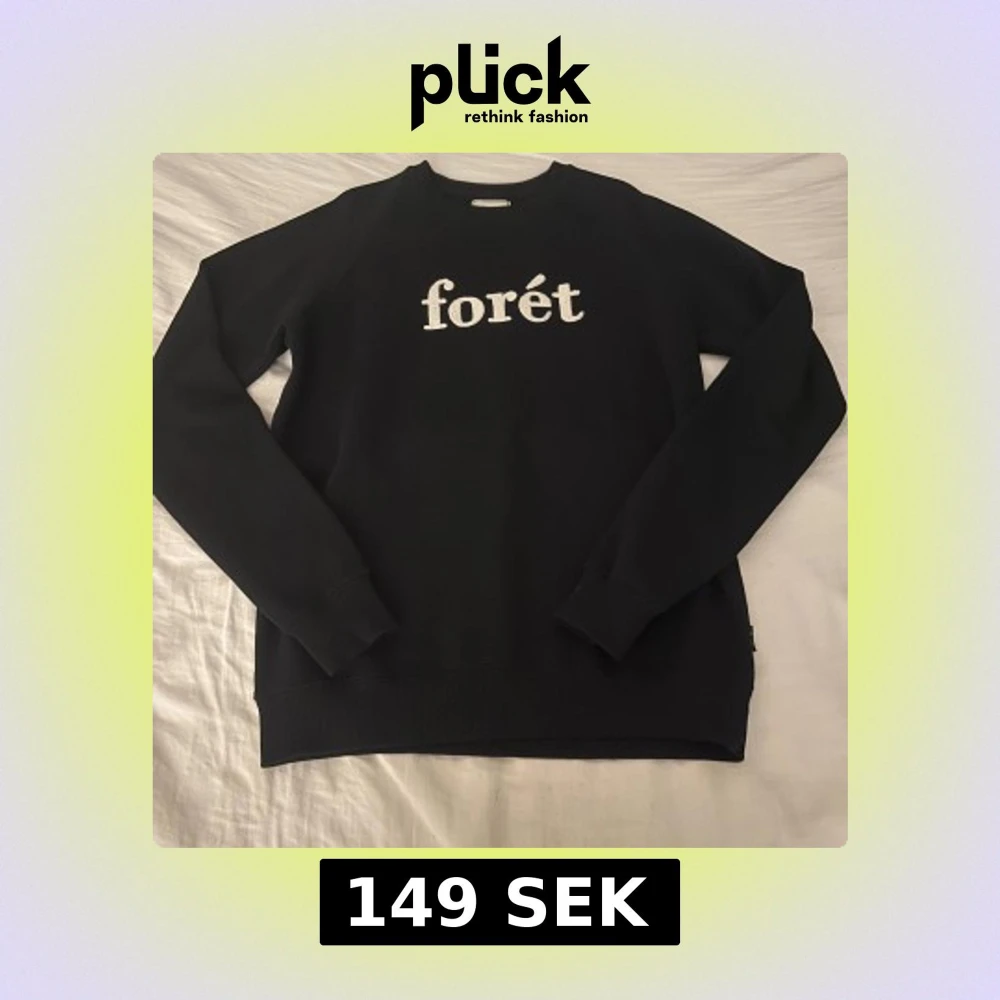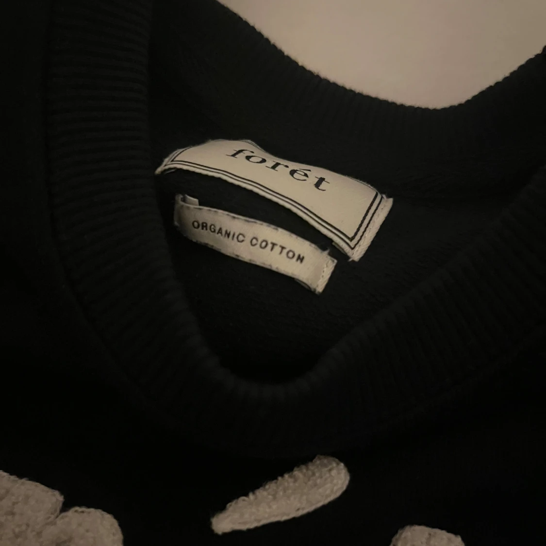 Svart sweatshirt från Forét med vit broderad logga på bröstet. Tillverkad i ekologisk bomull, har rund hals och ribbade muddar vid ärmslut och nederkant. Perfekt för dig som gillar clean och enkel stil.