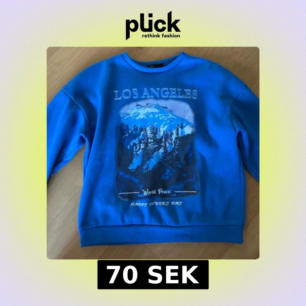 Blå sweatshirt från Shein med stort tryck av snöiga berg och skog