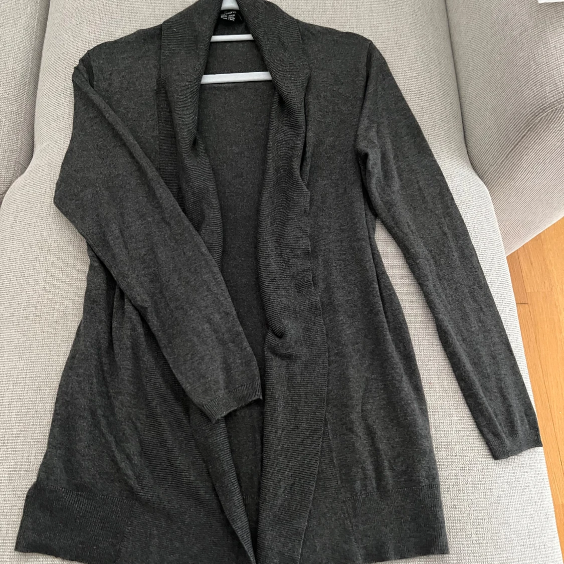 Mysig och stilren mörkgrå kofta från Esmara. Koftan är öppen framtill med bred ribbad kant och har långa ärmar. Perfekt att slänga på sig över en t-shirt eller topp för en chill och enkel look.