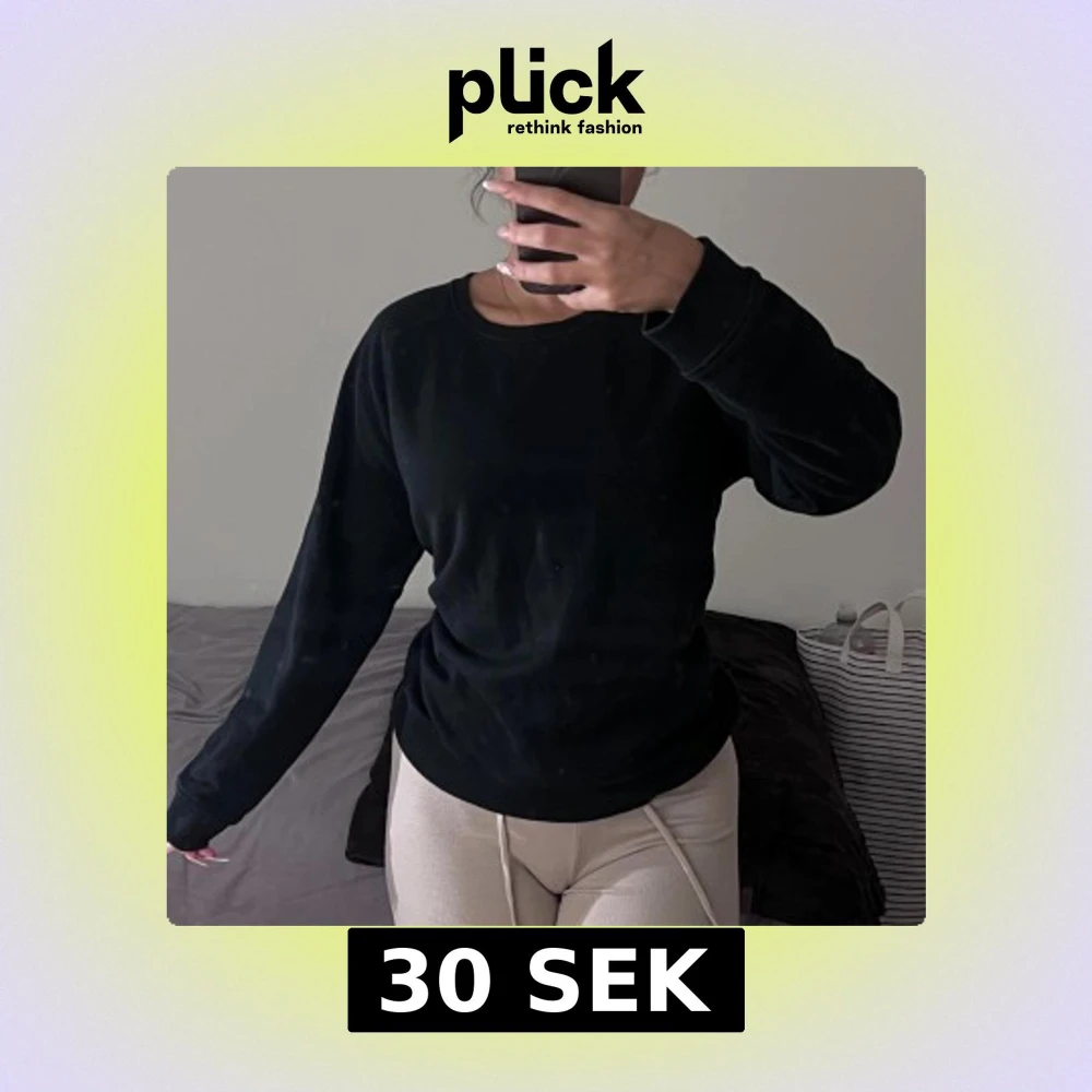 En enkel svart långärmad sweatshirt med rund hals och ribbade muddar. Perfekt för chill dagar och passar till allt. Mjuk och skön, med loose passform som ger en avslappnad vibe.