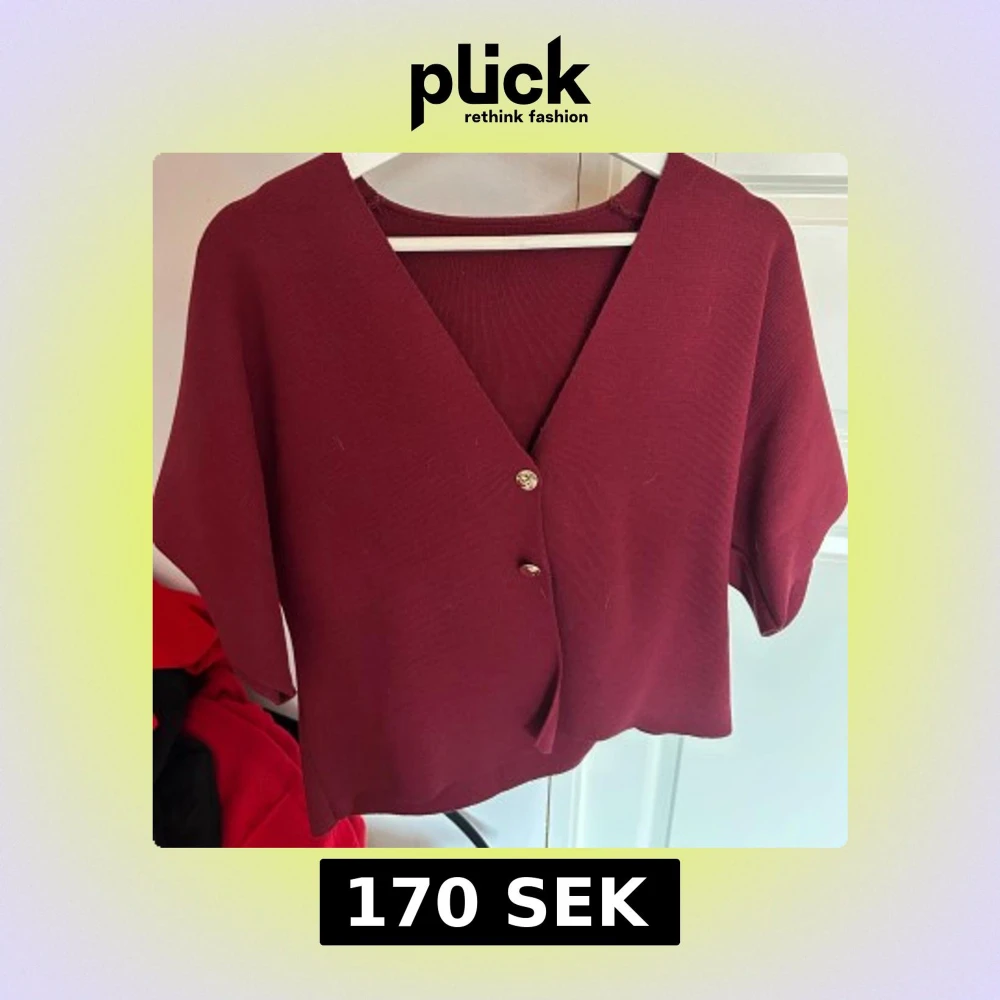Jätte fin vinröd T-shirt i ”stickat” material!! Vet varken vart den är ifrån eller vilken exakt storlek! Men skulle gissa på S/M. Den är endast använd 1 gång 🌸 Perfekt färg till hösten