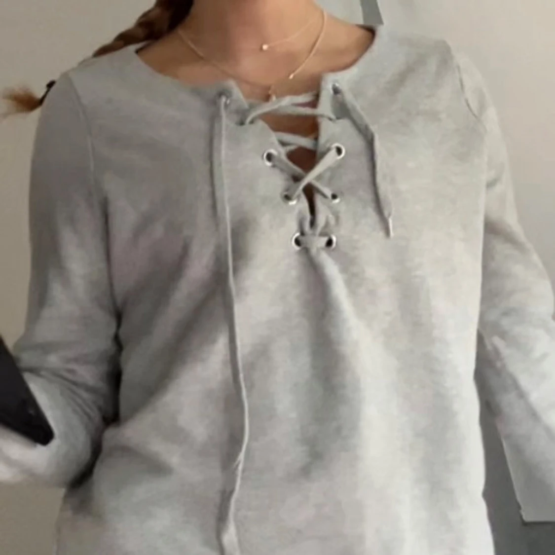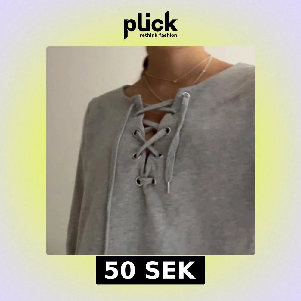 Cool sweatshirt med snörning, köpt second hand så osäker på märke. Går att ändra om snörningen. Storlek S och inga defekter