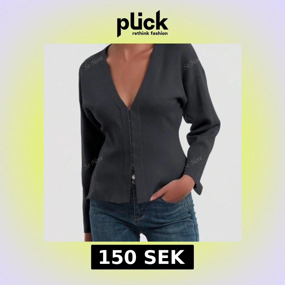 Stilren svart kofta med djup v-ringning och knappar framtill. Långärmad modell i ett mjukt material som sitter snyggt och passar perfekt till jeans. Enkel och clean design som är lätt att matcha.