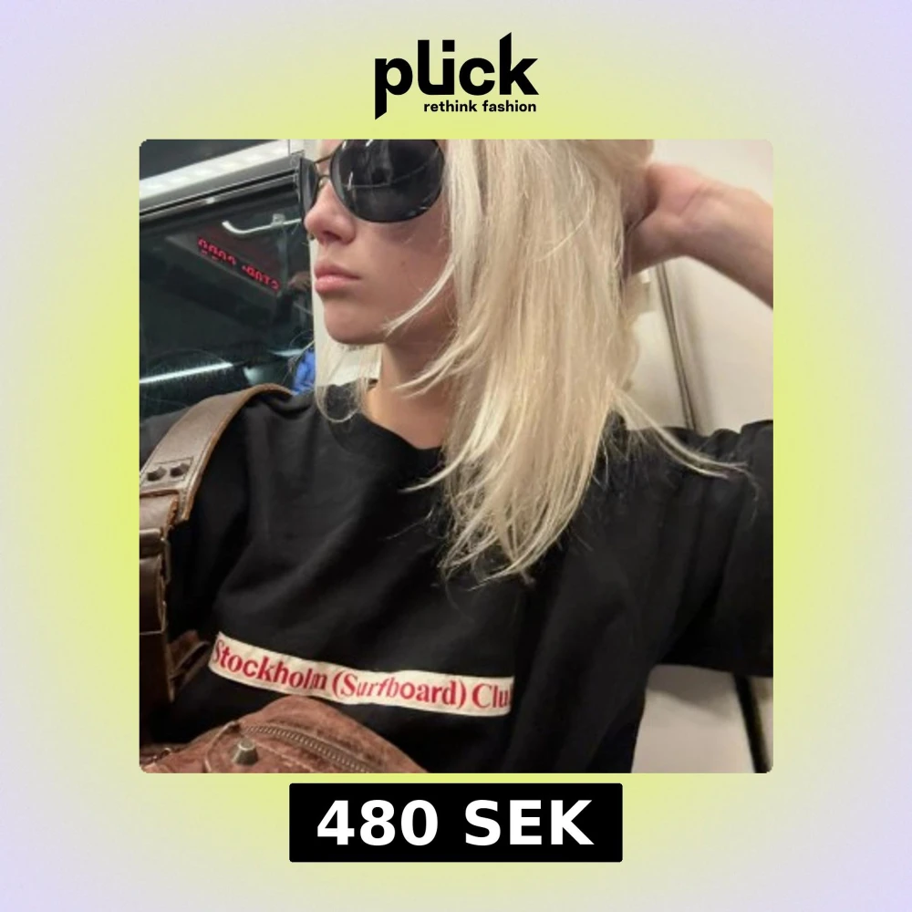 Snygg svart sweatshirt från Stockholm Surfboard Club med tryck på bröstet. Perfekt för en avslappnad stil. Tröjan har långa ärmar och en klassisk rund halsringning.