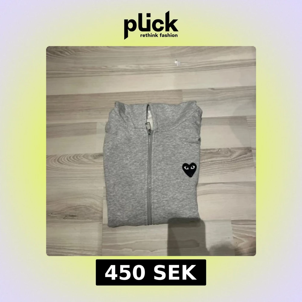 Grå hoodie med dragkedja från Comme des Garçons Play. Ikoniskt svart hjärta med ögon på bröstet och stort hjärta på ryggen. Mjuk bomull, huva och långa ärmar. Perfekt för dig som gillar streetstyle och vill sticka ut med en klassiker.