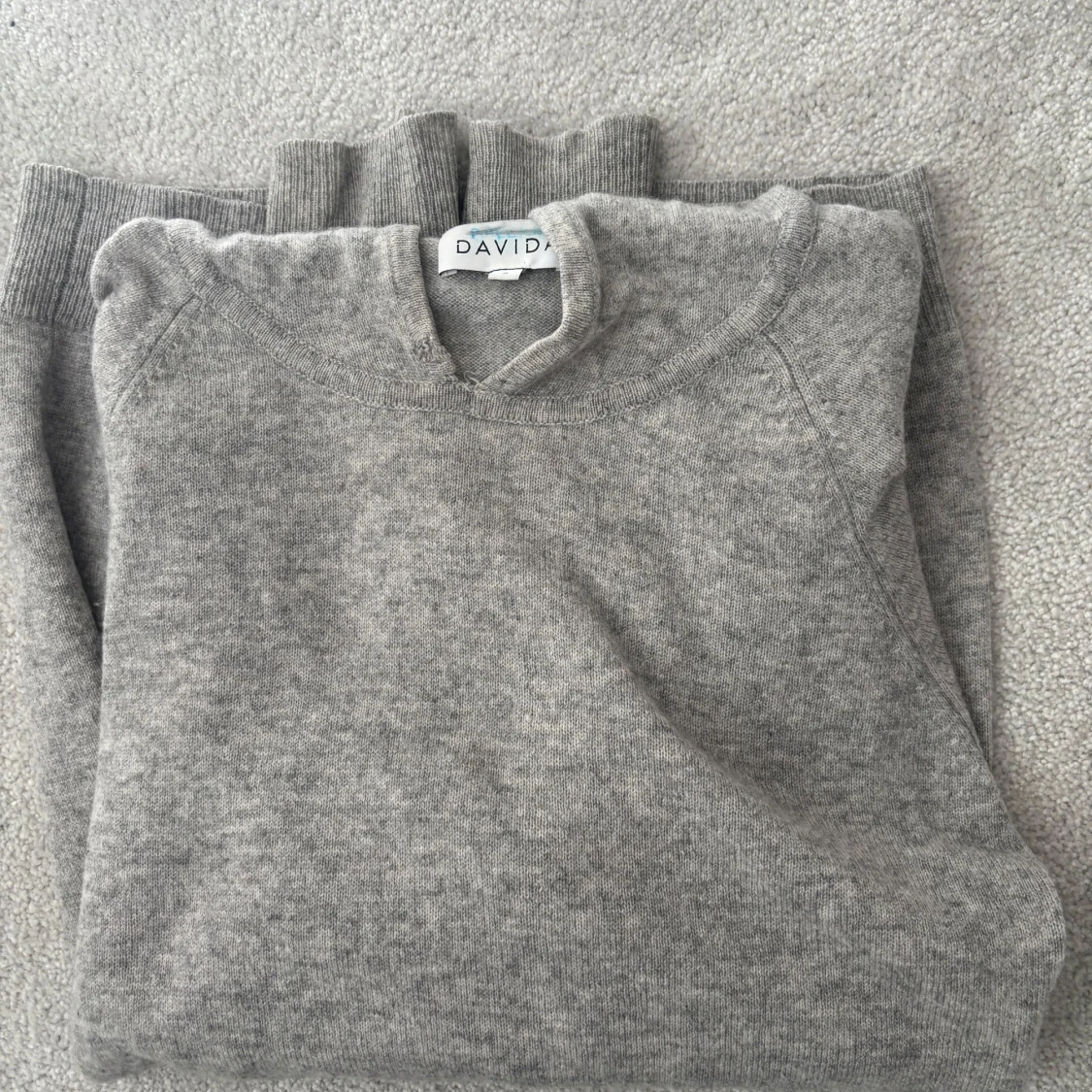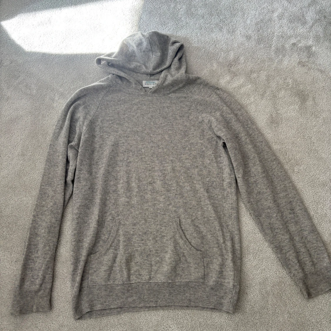Mjuk och lyxig grå hoodie från Davida i kashmir. Tröjan har långa ärmar, huva och en praktisk magficka framtill. Perfekt för en avslappnad och stilren look.