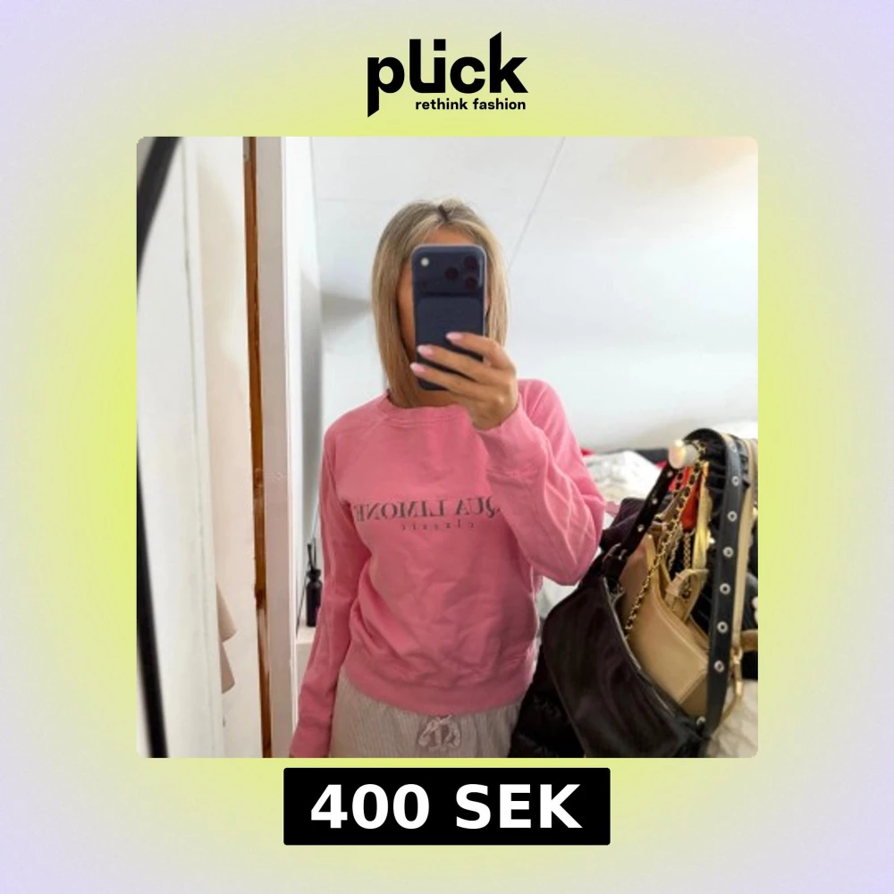 Säljer en rosa sweatshirt från Aqua Limone med tryck på bröstet och en stor gul citron på ryggen. Tröjan har rund hals, långa ärmar och ribbade muddar vid ärmslut och nederkant. Perfekt för dig som gillar färg och vill sticka ut lite extra.