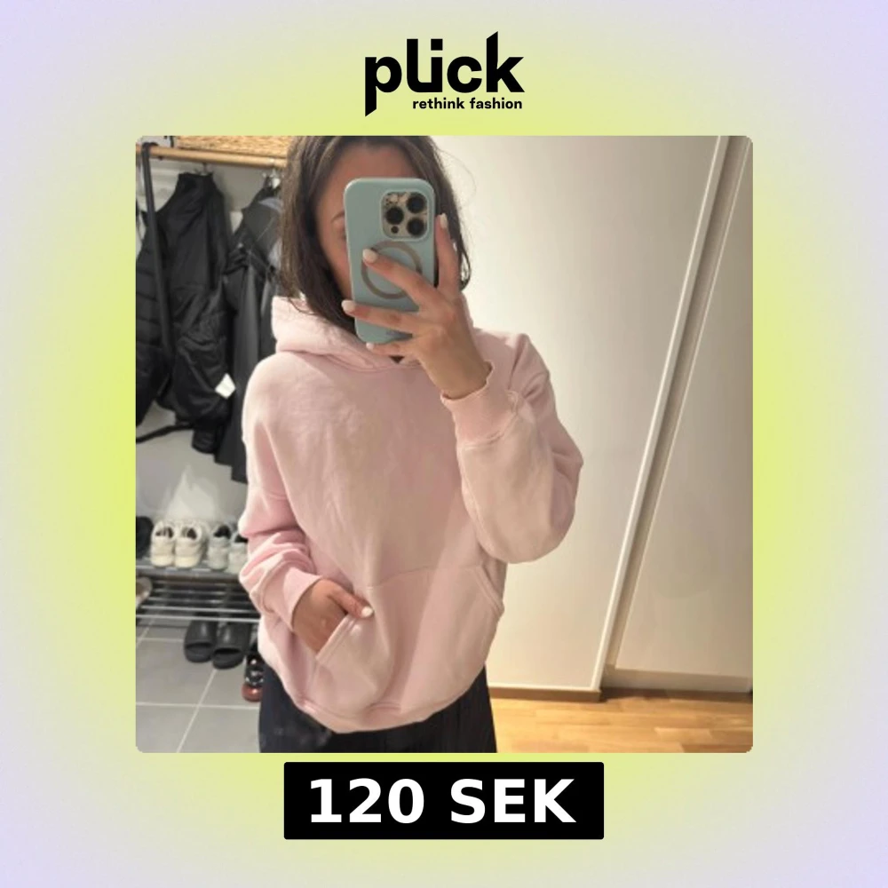 Säljer en ljusrosa hoodie med huva och magficka. Mjuk och skön, passar till det mesta. Stl S