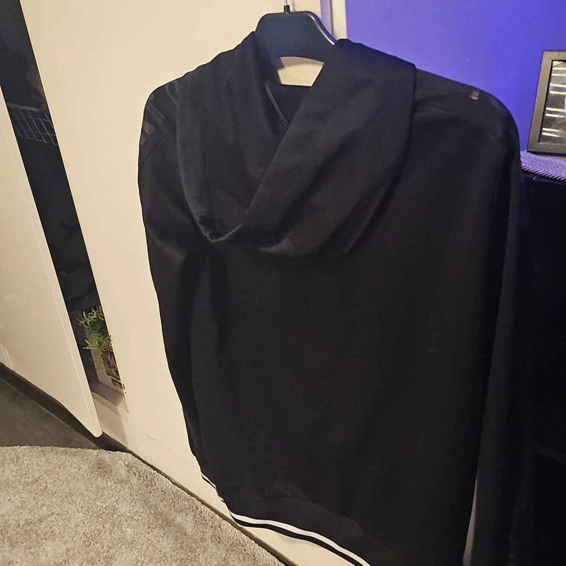 Snygg svart hoodie från Plein Sport med ett stort tryck på framsidan. Den har en justerbar huva och ribbade muddar vid ärmslut och nederkant. Top skick inga fläckar eller märken