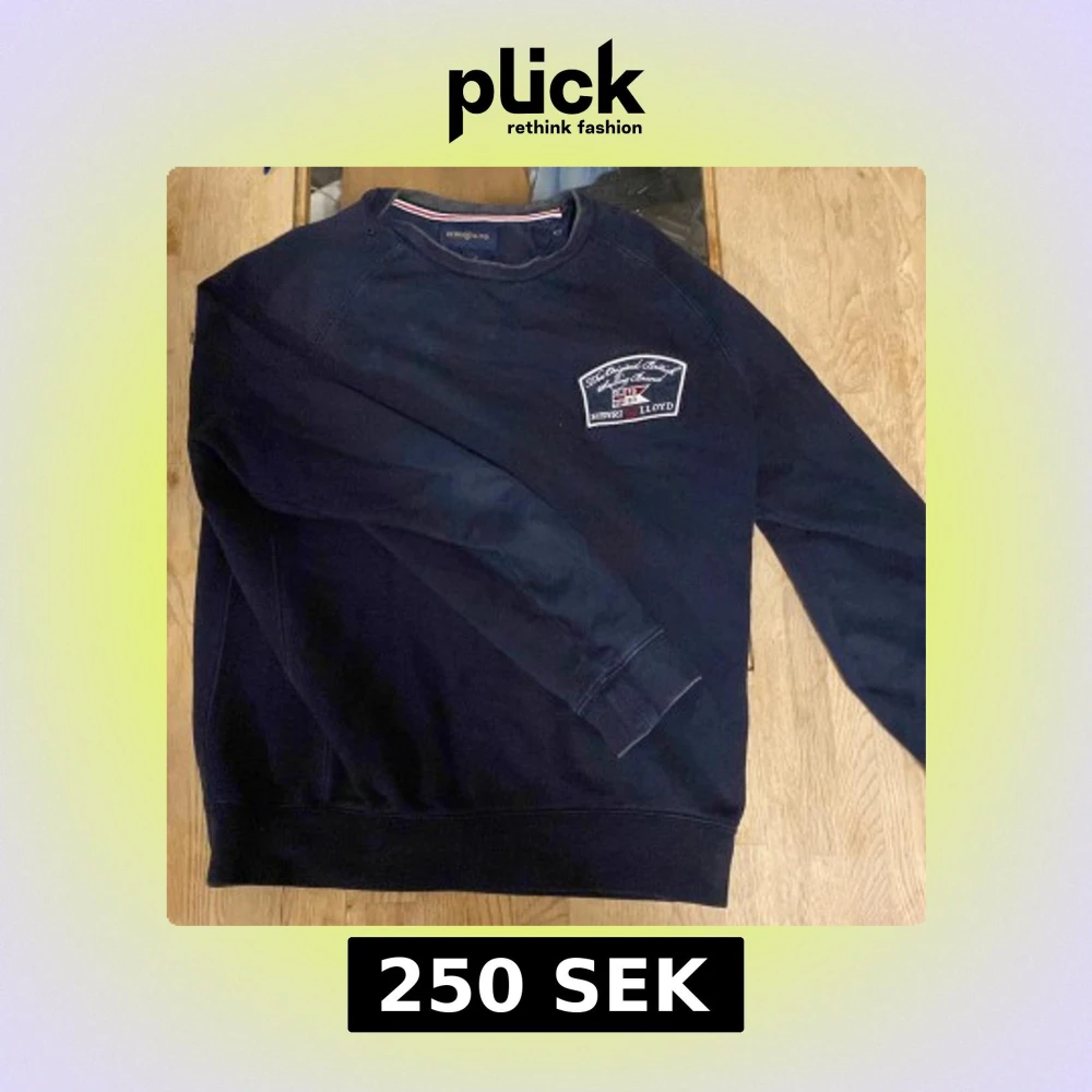 Säljer en mörkblå tröja från Henri Lloyd med ett broderat märke på bröstet. Tröjan har långa ärmar och ribbade muddar vid ärmslut och nederkant. Perfekt för en avslappnad stil.
