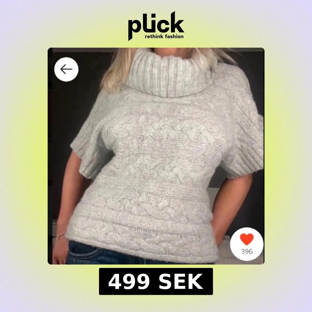 Mysig grå stickad tröja med polokrage och korta ärmar. Perfekt för kyliga dagar med sitt kabelstickade mönster som ger en klassisk look. använd ett fåtal gånger