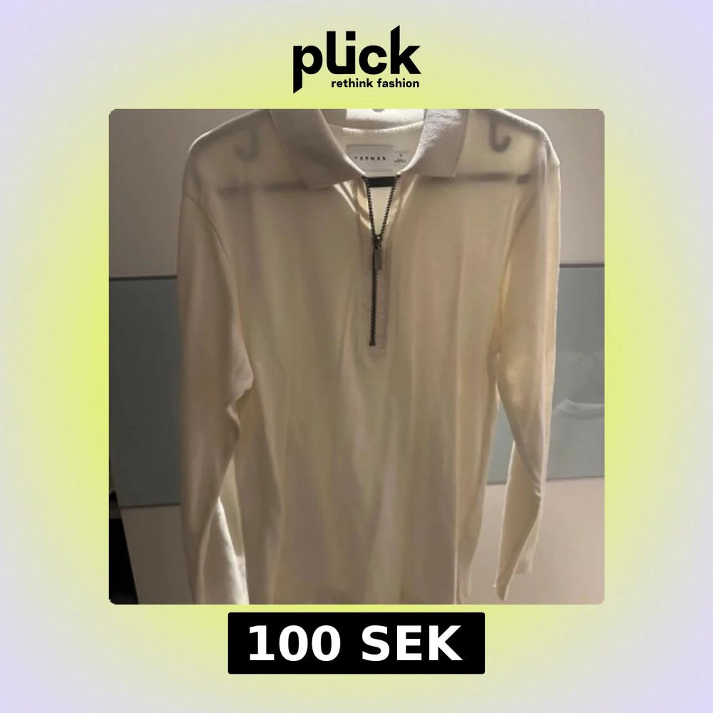 Säljer en stilren vit långärmad tröja från Topman med dragkedja framtill. Perfekt för en avslappnad och snygg look. Tröjan har en klassisk krage och är tillverkad i ett mjukt material.