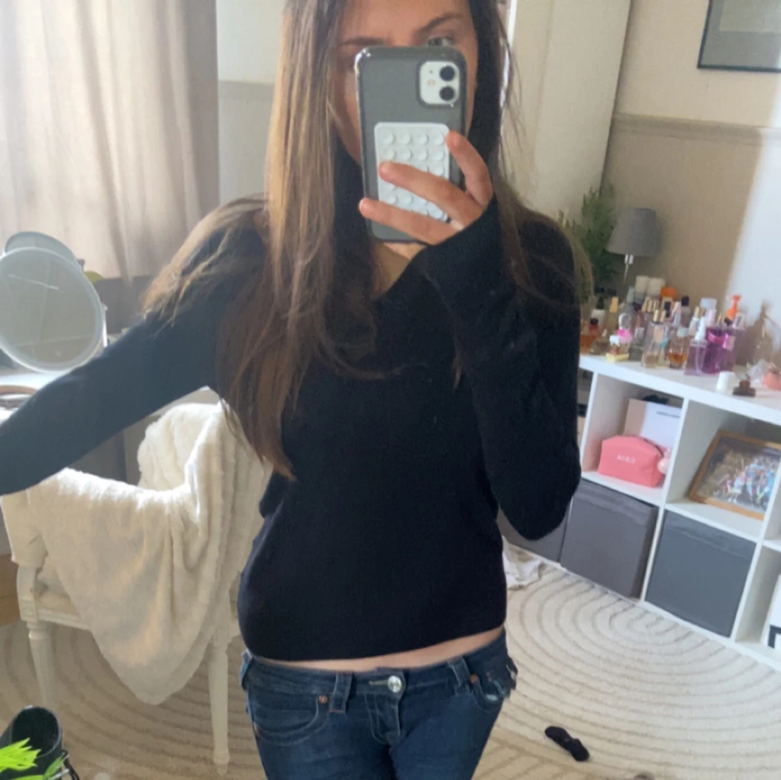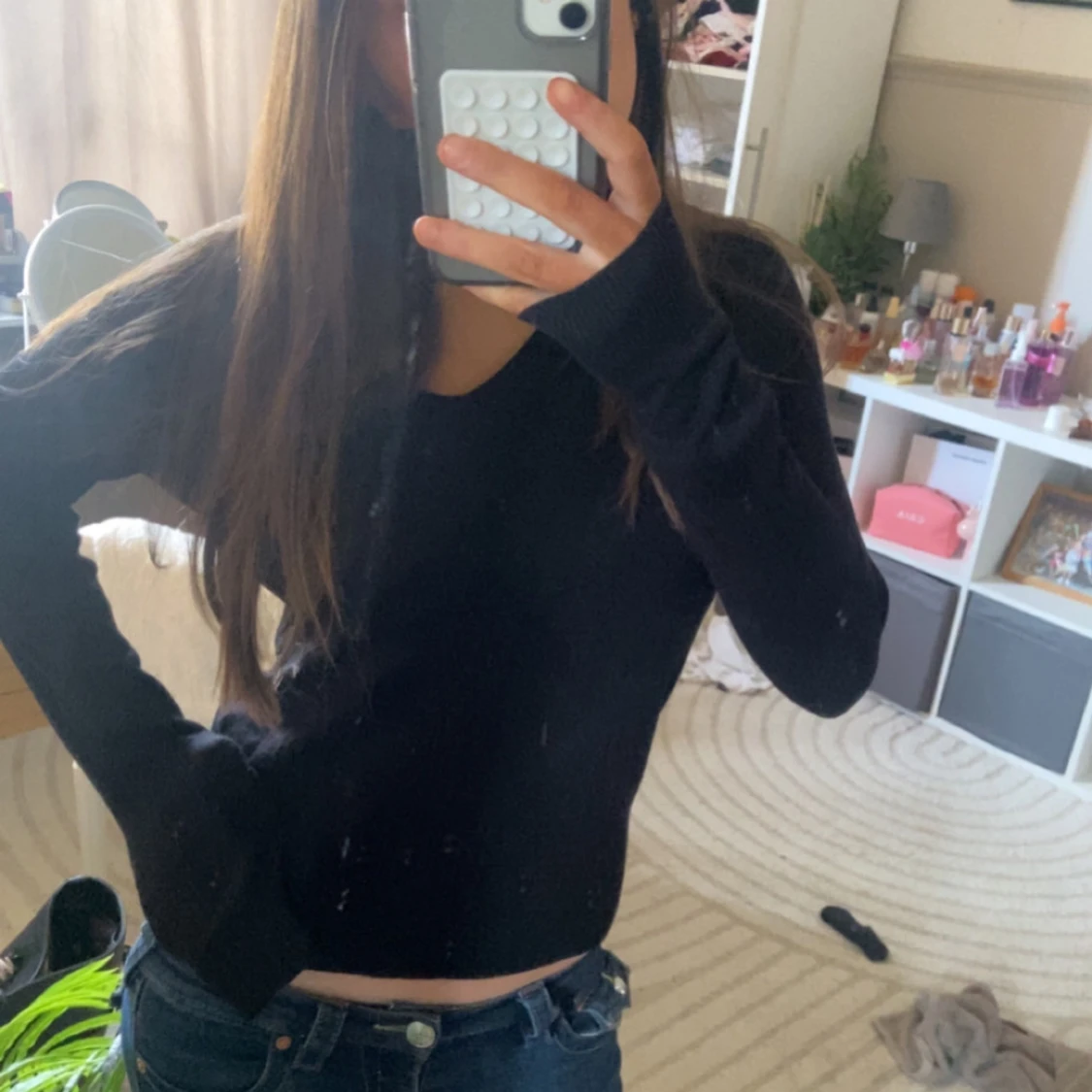 Svart stickad jättemjuk v ringad tröja skit snygg. Har andvänt två gånger innan men kommer inte till så mycket användning