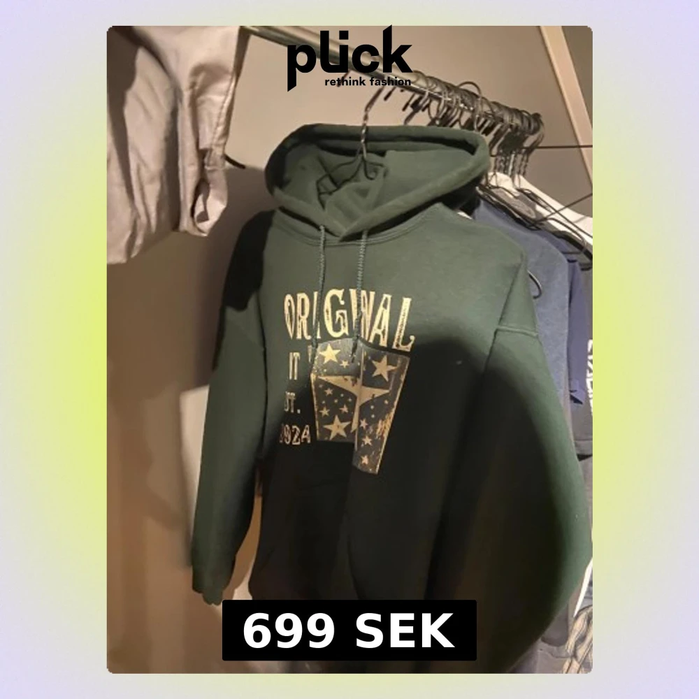 ENDA PÅ PLICK!!!! Mörkgrön hoodie från Original Fit med stor stjärn- och textprint framtill. Tröjan har huva med snörning och en klassisk känguruficka. Perfekt för dig som gillar en avslappnad och cool stil. Passar dig som är runt 180