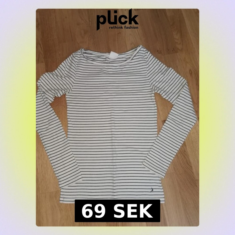 Vit långärmad tröja med svarta horisontella ränder och en liten broderad Boomerang logga längst ner. Köpt på Boomerang butiken. Tröjan har en rundad hals och är gjord i mjuk bomull. Passformen är normal och den är enkel att matcha med jeans eller kjol. Den är i fint använt skick. Storlek XS
