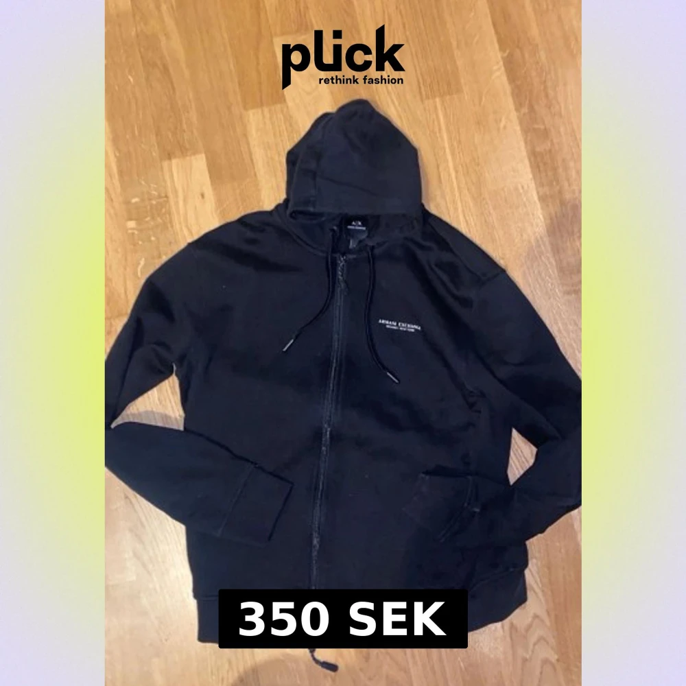 Svart hoodie från Armani Exchange med dragkedja framtill, huva med snörning och diskret logga på bröstet. Tröjan har långa ärmar och två fickor framtill. Perfekt för en chill och stilren look. Storlek XS-S