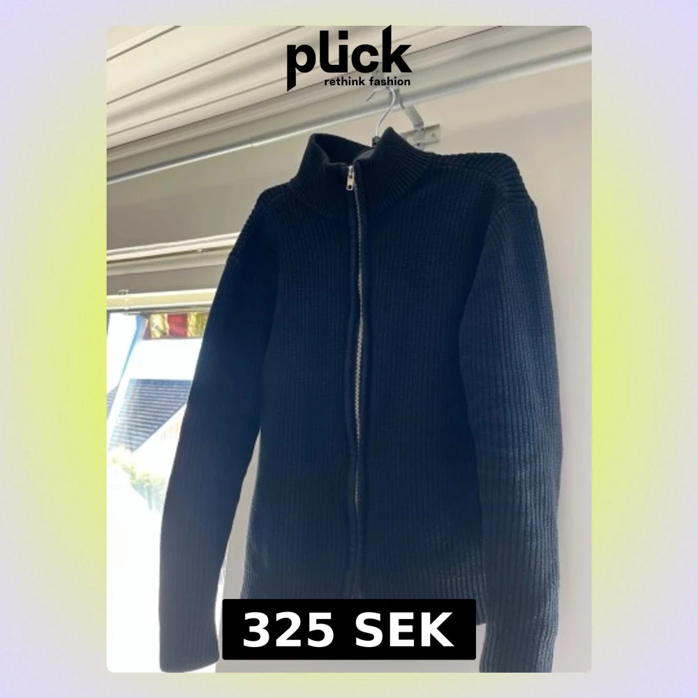 Svart ribbstickad kofta med hel dragkedja och hög krage. Koftan har långa ärmar och är tillverkad i ett mjukt stickat material som ger en skön passform.