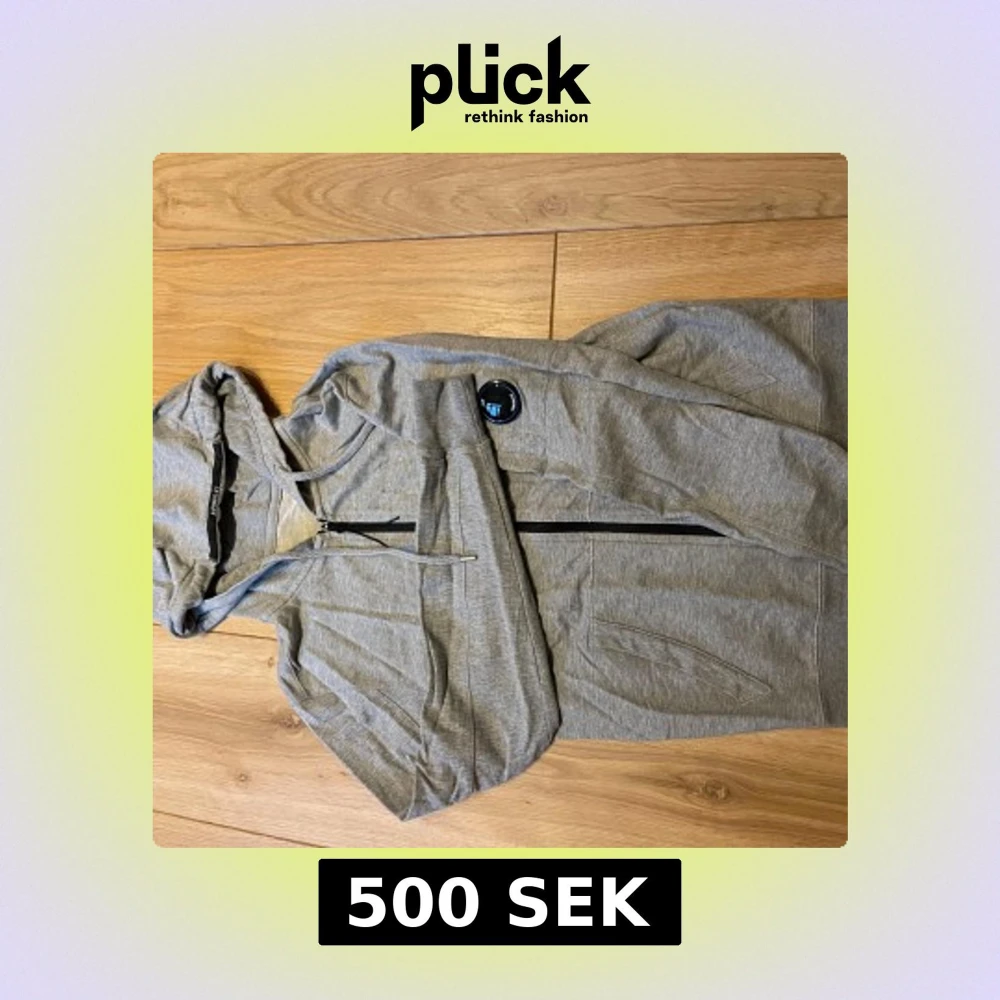 Säljer en grå hoodie från C.P Company med dragkedja framtill och huva. Tröjan har fickor på sidorna och en liten logga på ärmen. Perfekt för en avslappnad stil.